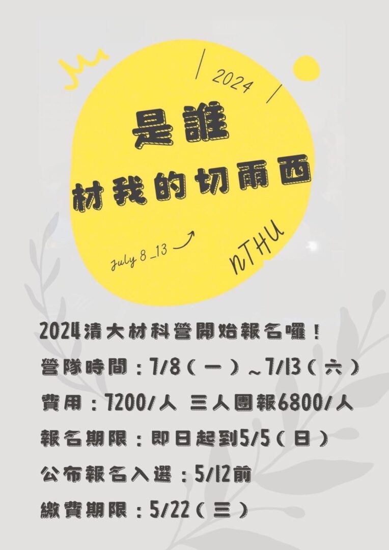 七、檢附2024「材料科技研習營《是誰材我的切爾西》」招生宣傳海報,請惠予轉知宣傳。