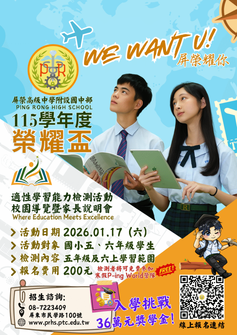 ★ 115年1月17日(星期六):榮耀盃適性學習能力檢測日暨家長說明會