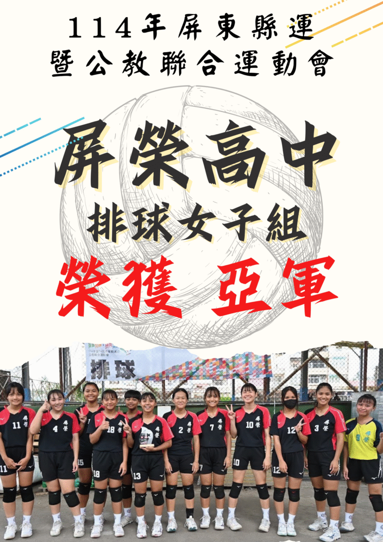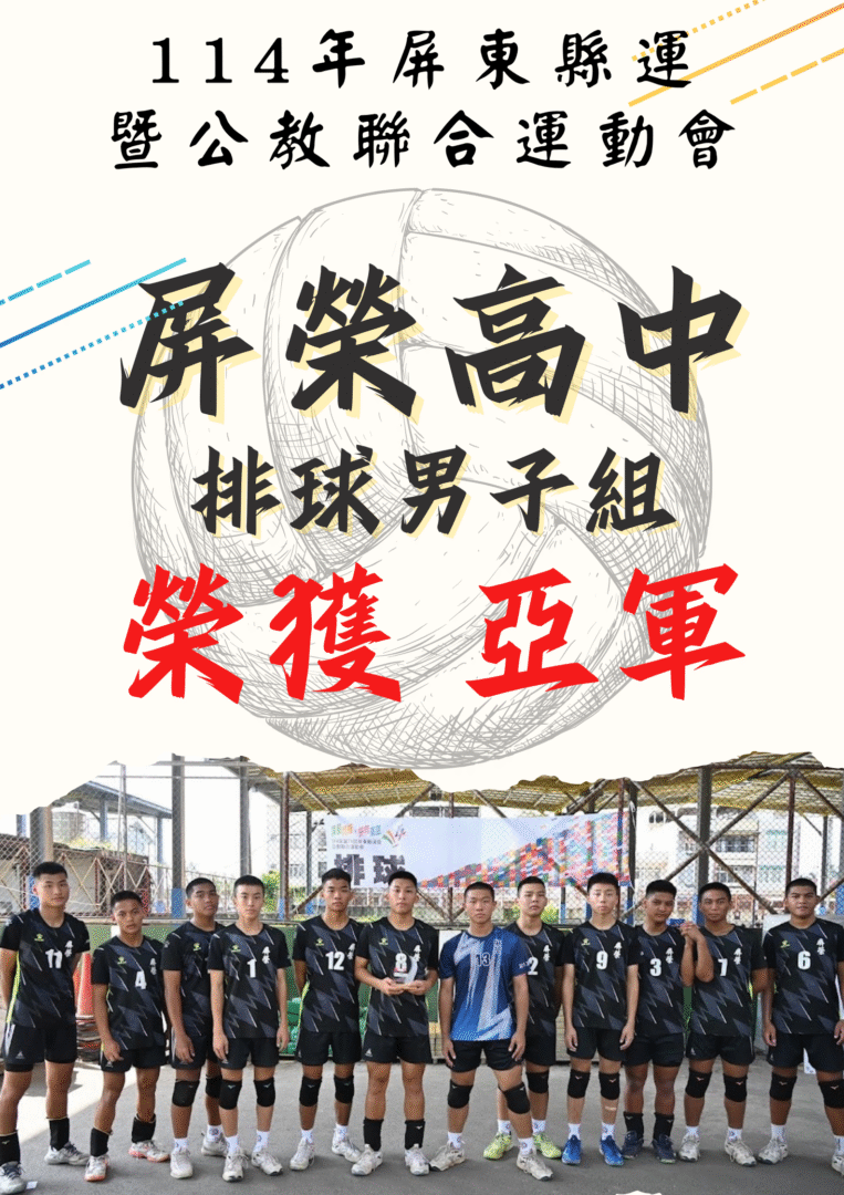 狂賀!屏榮高中排球隊參加114年屏東縣運暨公教聯合動會榮獲高中男子組、高中女子組亞軍