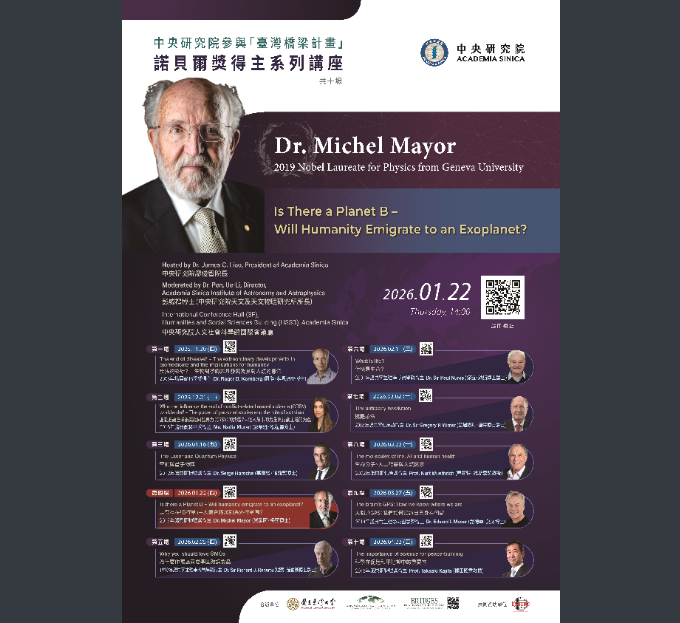 一、「臺灣橋梁計畫」自114年11月起至本(115)年4月,共將邀請 31 位諾貝爾獎得主訪問本院及全臺十餘所大學,相關資訊請參閱網站:https://www.peace-bridges.net/。