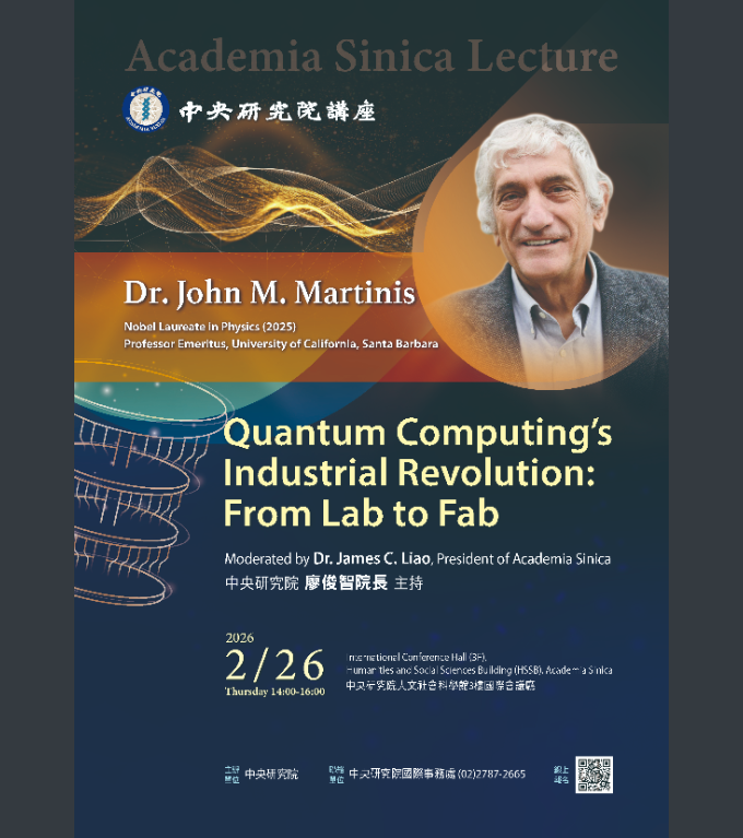一、「中央研究院講座」係本院最高榮譽講座,本次特邀2025年諾貝爾物理學獎得主約翰.馬汀尼斯博士以「量子運算的產業轉型:從科研邁向產業」為題演講(活動海報如附件)。