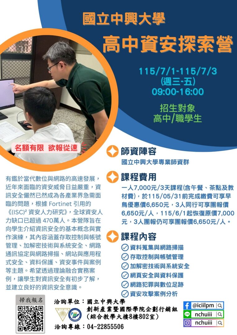 四、辦理時間:115年7月1日至115年7月3日。