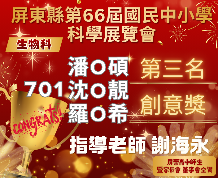 701潘O碩、沈O靚、羅O希 作品名稱:探究氧化石墨烯濃度與種子萌發率的關係