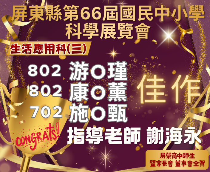 802游孟O瑾、康O薰、702施O甄 作品名稱:廢蛋殼大變身-探究分析蛋殼粉去油能力