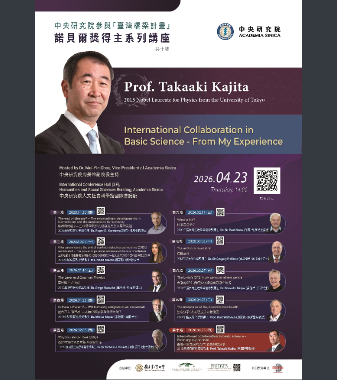 一、「臺灣橋梁計畫」自114年11月起至本(115)年4月,共將邀請 31 位諾貝爾獎得主訪問本院及全臺十餘所大學,相關資訊請參閱網站:https://www.peace-bridges.net/。